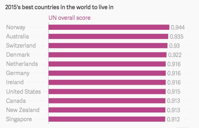 一份由联合国评选的,全球生活质量排行榜显新鲜出炉!