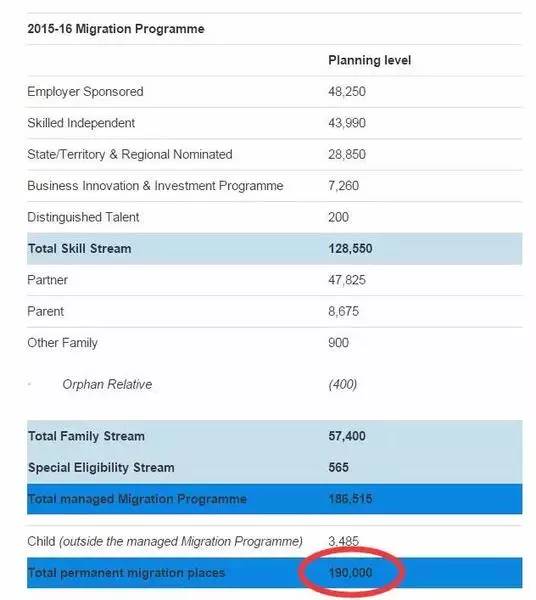而澳洲每年吸纳的总移民(不含留学生,工作签等人群)人数为19万人!