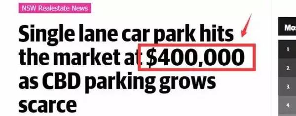 悉尼一个车位卖到40万澳币