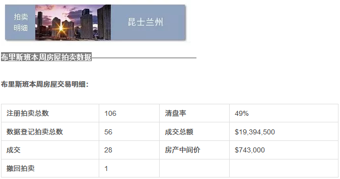 澳洲房产拍卖市场评论显示,统计的...