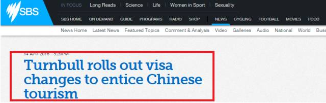 SBS:谭宝全面推行签证改革政策,以吸引中国游客!