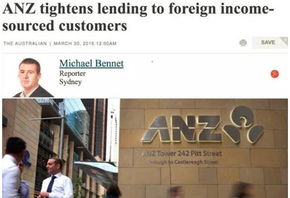 3月30日,澳洲各大媒体发布了报道,声称澳新银行(ANZ)于前一天通知了各家经纪公司,宣布将限制“纯海外收入投资者”的贷款。