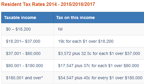 目前的澳洲个人收入税率:
