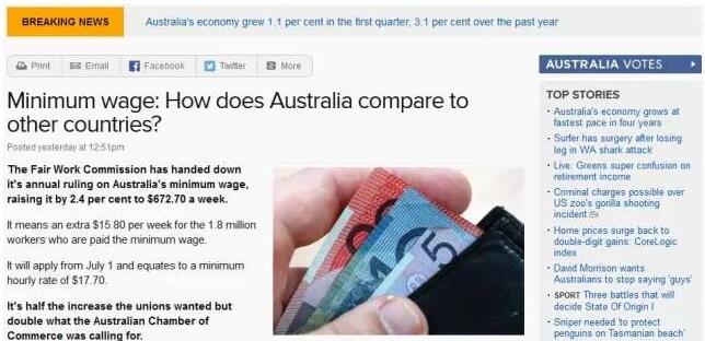 2016年7月1日,新的一个财政年又开始了。公平工作委员会宣布了这一执政澳大利亚的最低工资,提高2.4个百分点至672.70澳元一个星期。这意味着一个额外的15.80澳元每星期谁是支付最低工资的工人180万。它将从7月1日相当于最低时薪17.70澳币。