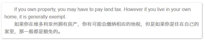 如果您在维多利亚州拥有房产,地税取决于您拥有什么地,用途及这块地的总价。 如果您的土地价值在25万澳币或者大于25万澳币的话,那么2016年您是需要支付地税的。