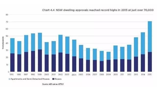 回顾从2005年起的七年,房屋平均完工量每年仅不到30,000套,不过在过去的几年里有明显回升,七年的低建筑量以及强劲的人口增长,让新州积压了大量住宅需求(尤其是悉尼市)。