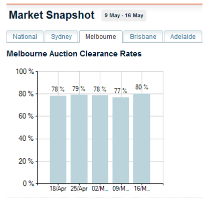 5月16日墨尔本房产清盘率80%,上星期清盘率是77%,去年同期只有70%。