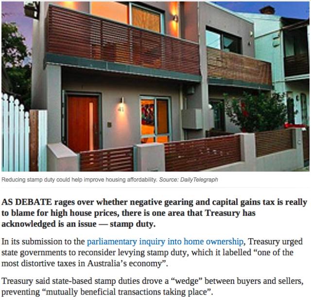 在提交给房屋所有权议会审查组的文件中,财政部敦促各州政府重新思考印花税政策,它被认为是“澳洲经济中最扭曲的一项税收”。