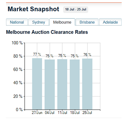 刚过去的7月份最后一个周末(7月25、26日),整个维州总共进行了687场房产拍卖,在拍卖中成功售出房产542套,录得其拍卖清盘率为76%,高于上周的75%,也比去年同期高出了9个百分点(70%)。