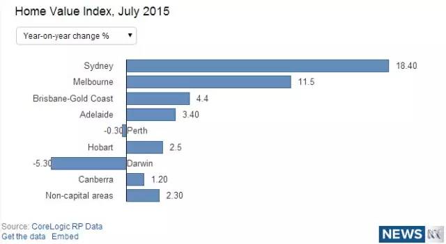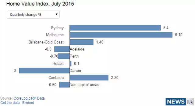 根据官方房价指数显示,墨尔本7月份房价涨幅为4.9%,过去三个月的涨幅为6.1%,不论是7月涨幅还是上季度涨幅,均领先于悉尼,而墨尔本全年涨幅为11.5%。