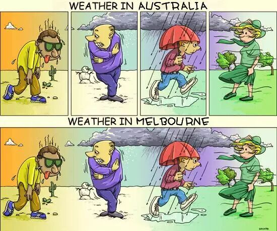A: 很显然,你还没有体会到墨尔本一日四季之个性精髓,小心冷到不行,或是被淋成落汤鸡哦~