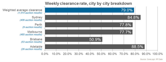 反映市场情况的重要指标之一——二手房拍卖数据也呈现出市场竞争激烈度不减。RP Data数据显示,三月中旬,全澳二手房清盘率迎来了六年来最高78.3%;进入4月份的两个周末迎来了两个超级星期六,全澳清盘率分别是78.9%、79%,再度刷新记录。