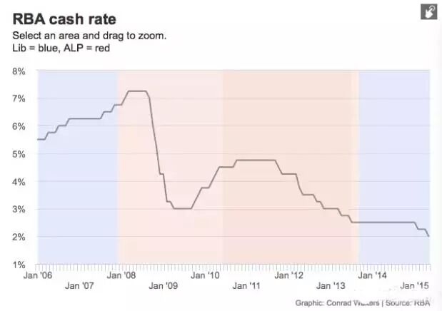 自2008年四月份,澳洲央行利息达到历史最高水平以来,澳洲央行就开始不断地调整货币政策。在过去七年时间中,澳洲央行已将利率从7.25厘下调至了2.25厘的历史最低水平!此次更是创造了历史新低。